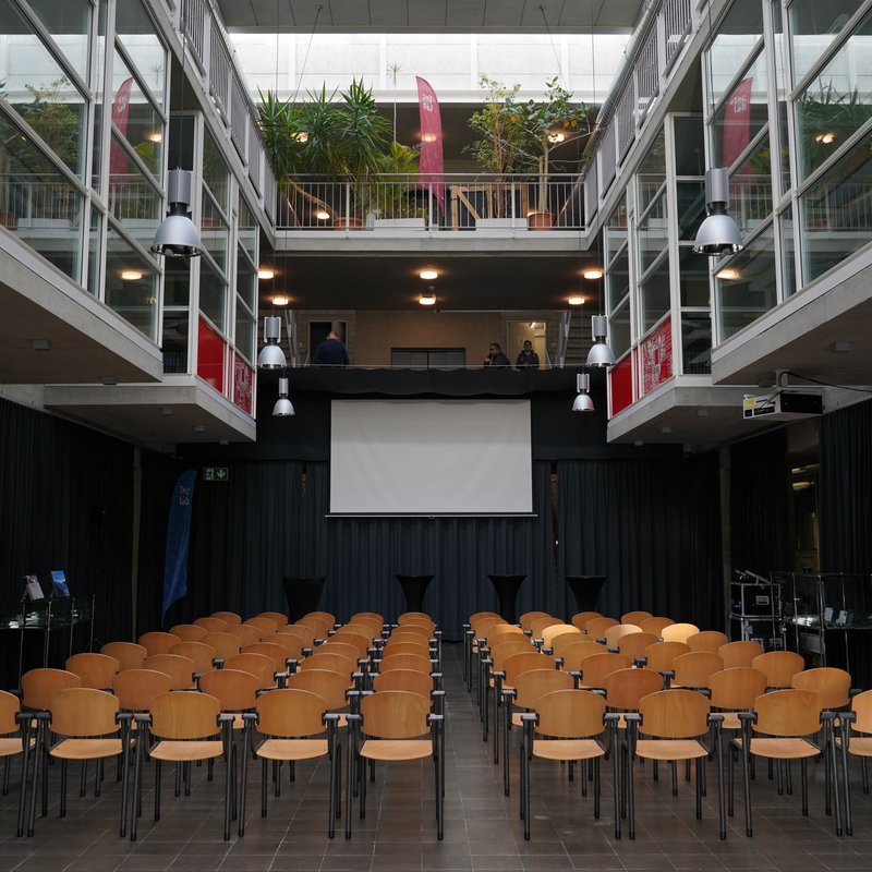 Der gestufte Vorlesungsraum eignet sich besonders für Präsentationen, Lehrveranstaltungen und grössere Gruppen. Durch die ansteigende Bestuhlung haben alle Teilnehmenden eine gute Sicht auf die Präsentationsfläche. Der Raum ist funktional ausgestattet und bietet eine ruhige Umgebung für konzentriertes Zuhören und Arbeiten.
